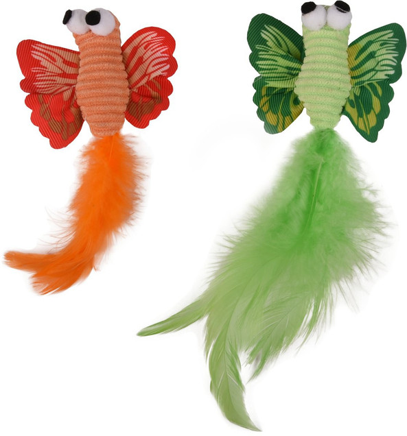 Ce jouet papillon multicolore est idal pour ton chat. Il est fabriqu en textile doux et rempli d'herbe chat et de plumes pour encore plus de plaisir de jeu. Laisse ton chat chasser et jouer avec ce jouet amusant !