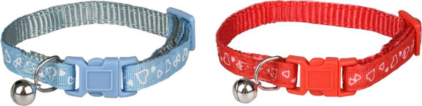 Le collier pour chaton Simran a une jolie impression de curs et est disponible en deux couleurs diffrentes. Vous recevrez un collier dans une couleur alatoire; le choix de la couleur n'est pas possible. Le collier a une fermeture clic de scurit et est quip d'une clochette.
