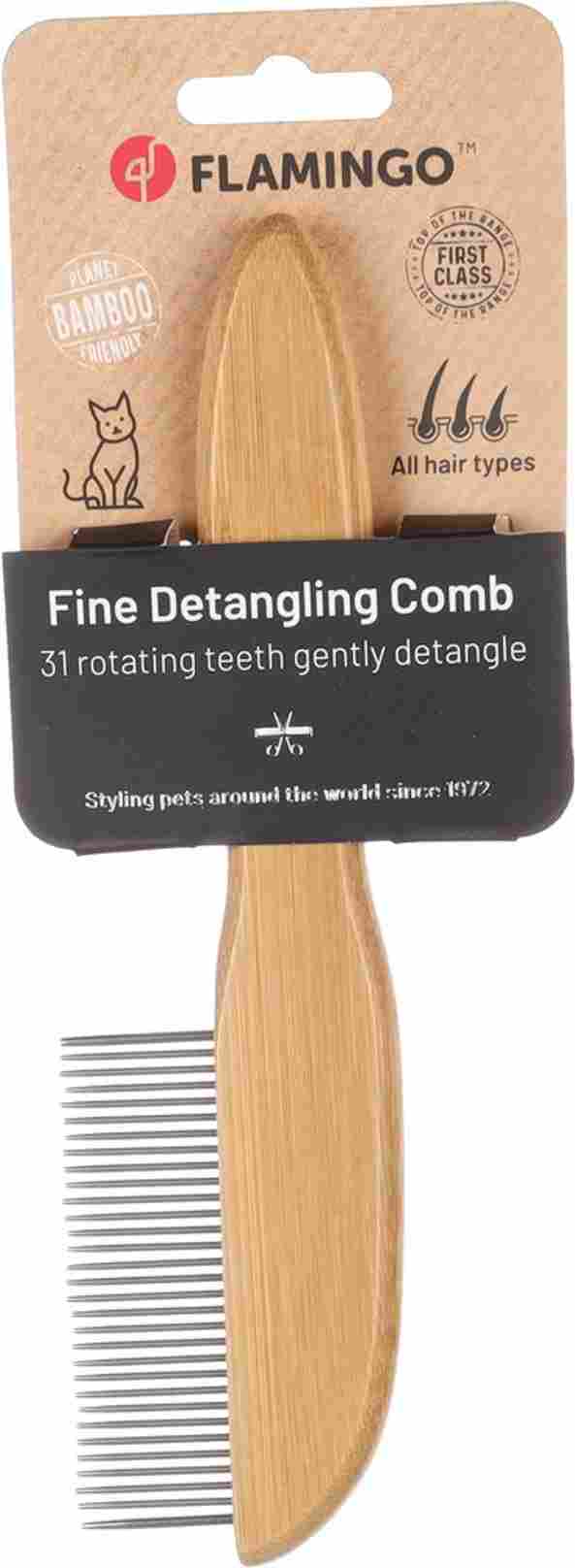 This bamboo comb is essential for every coat. The rotating teeth detangle knots without pulling and remove loose hair. Suitable for all coat types, the rounded teeth protect the skin. Durable and environmentally friendly.