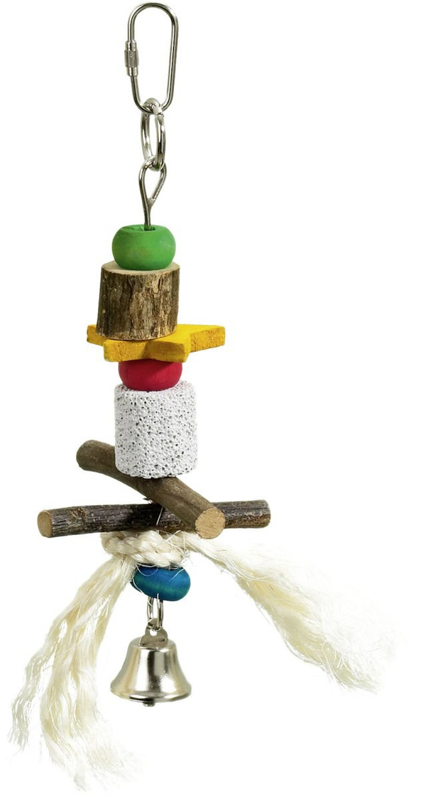 Ce jouet multifonctionnel est parfait pour tre suspendu dans la cage de votre oiseau. Avec ses nombreux lments suspendus, c'est un jouet trs polyvalent et amusant pour votre oiseau. En particulier, la petite clochette en bas attirera l'attention de votre oiseau maintes reprises.