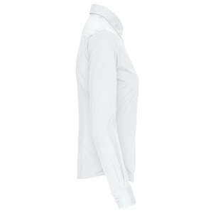 Ladies' long sleeve stretch shirt in cotton-elastane blend for a professional fit and comfort. This high-quality blank is perfect for office wear or custom branding. The 97% cotton and 3% elastane fabric provides a soft touch with necessary flexibility. Featuring front and back darts for a tailored look, this shirt includes a soft collar, self-colored buttons, and an angle cut adjustable cuff. The shaped hem ensures it looks great tucked in or out, making it versatile for office environments or casual professional settings. For businesses, this shirt serves as a premium canvas for branding. Whether you need bulk orders for hospitality staff or a single piece for a professional wardrobe, its durability and classic design stand out. The stretch properties ensure a flattering fit for various body types, maintaining its shape throughout the day. This garment is specifically engineered to withstand the rigors of daily wear in a corporate or hospitality environment while maintaining a crisp, professional appearance. The addition of elastane allows for a greater range of motion compared to traditional 100% cotton shirts, making it a favorite for active professionals. As a wholesale option, it provides exceptional value for companies looking to outfit large teams without compromising on style or quality. The shirt is ready for various customization techniques, allowing for seamless integration of corporate logos or promotional designs. With its timeless aesthetic and modern fit, it bridges the gap between traditional workwear and contemporary fashion, ensuring your brand looks its best in any scenario.