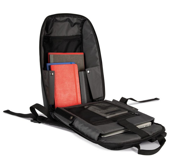 Padded laptop compartment + 3 large mesh inside pockets with zip fastenings to store cables and accessories.