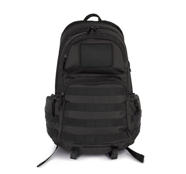 Urban tactical backpack with MOLLE attachment system.