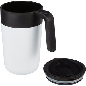 The stylish Nordia mug is constructed with stainless steel exterior and recycled plastic interior. The inner lid, slider, and handle are also made of recycled plastic. The lid has a sliding closure, making this mug perfect for enjoying your drinks on-the-go. BPA-free and tested and approved under German Food Safe Legislation (LFGB), and tested for phthalates content according to REACH regulations. Volume capacity is 400 ml. Hand wash recommended.