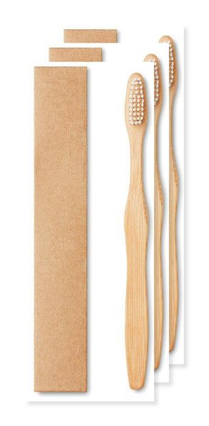 Pack of 3 GiftRetail MO9877 - DENTOBRUSH Eco-Friendly Bamboo Toothbrush in Kraft Box