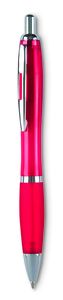 RIOCOLOUR Blue Ink Ball Pen with Soft Grip - Transparent Red - GiftRetail MO3314