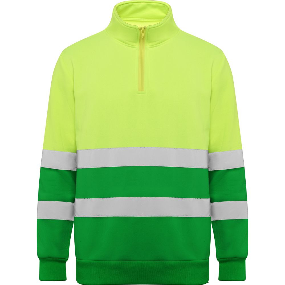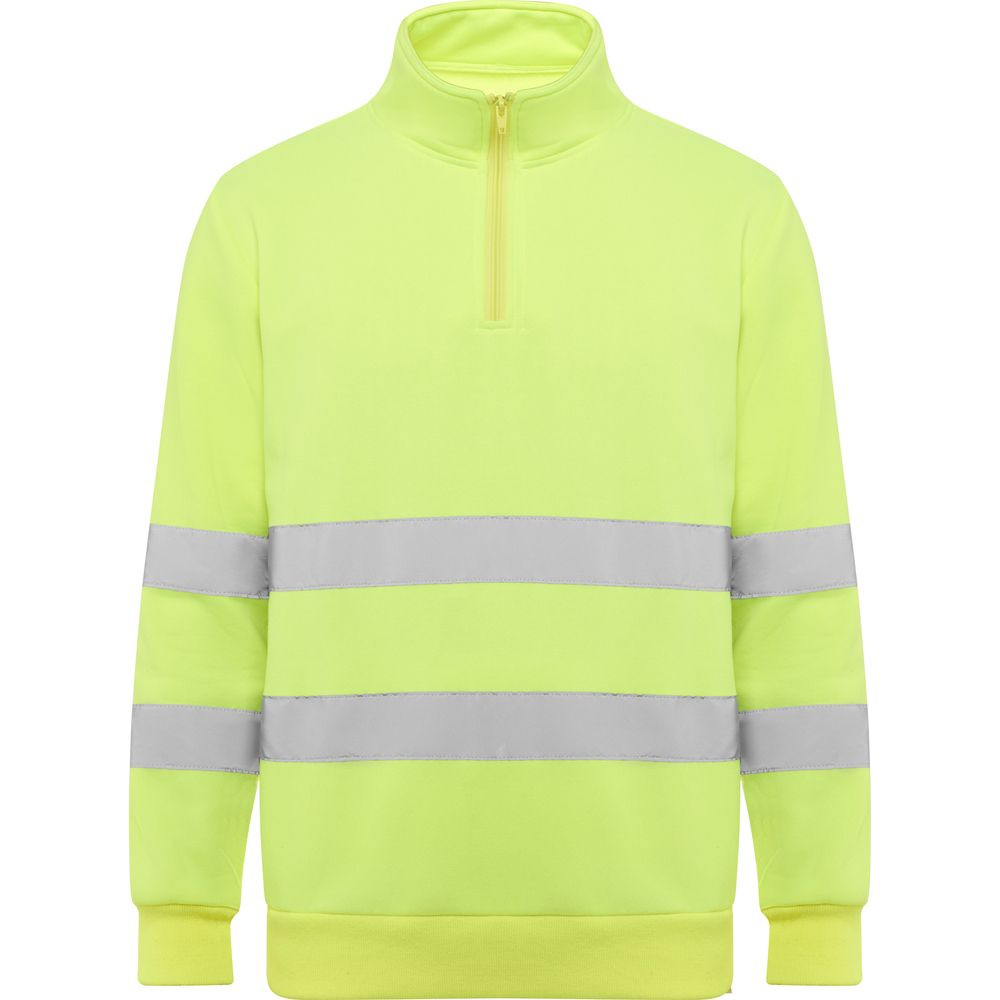 High-visibility sweater with half zip· High collar with chin protector and puller