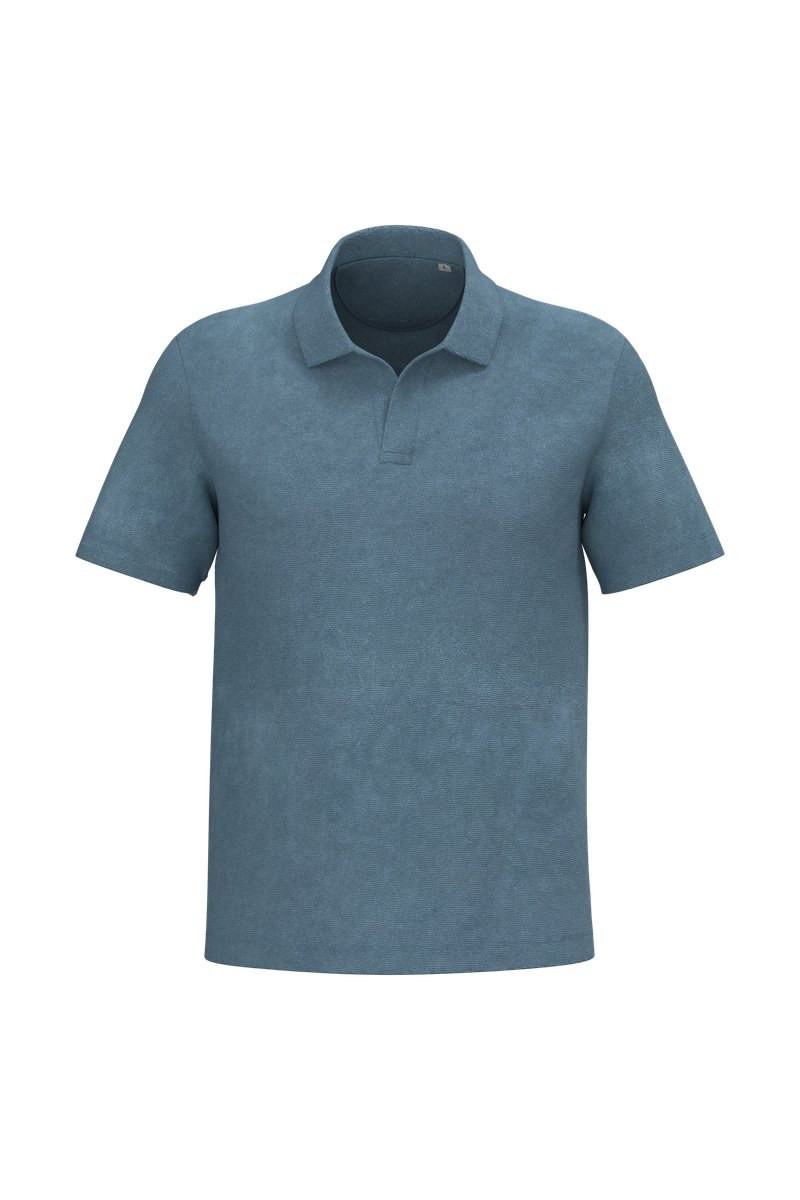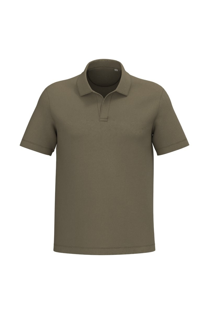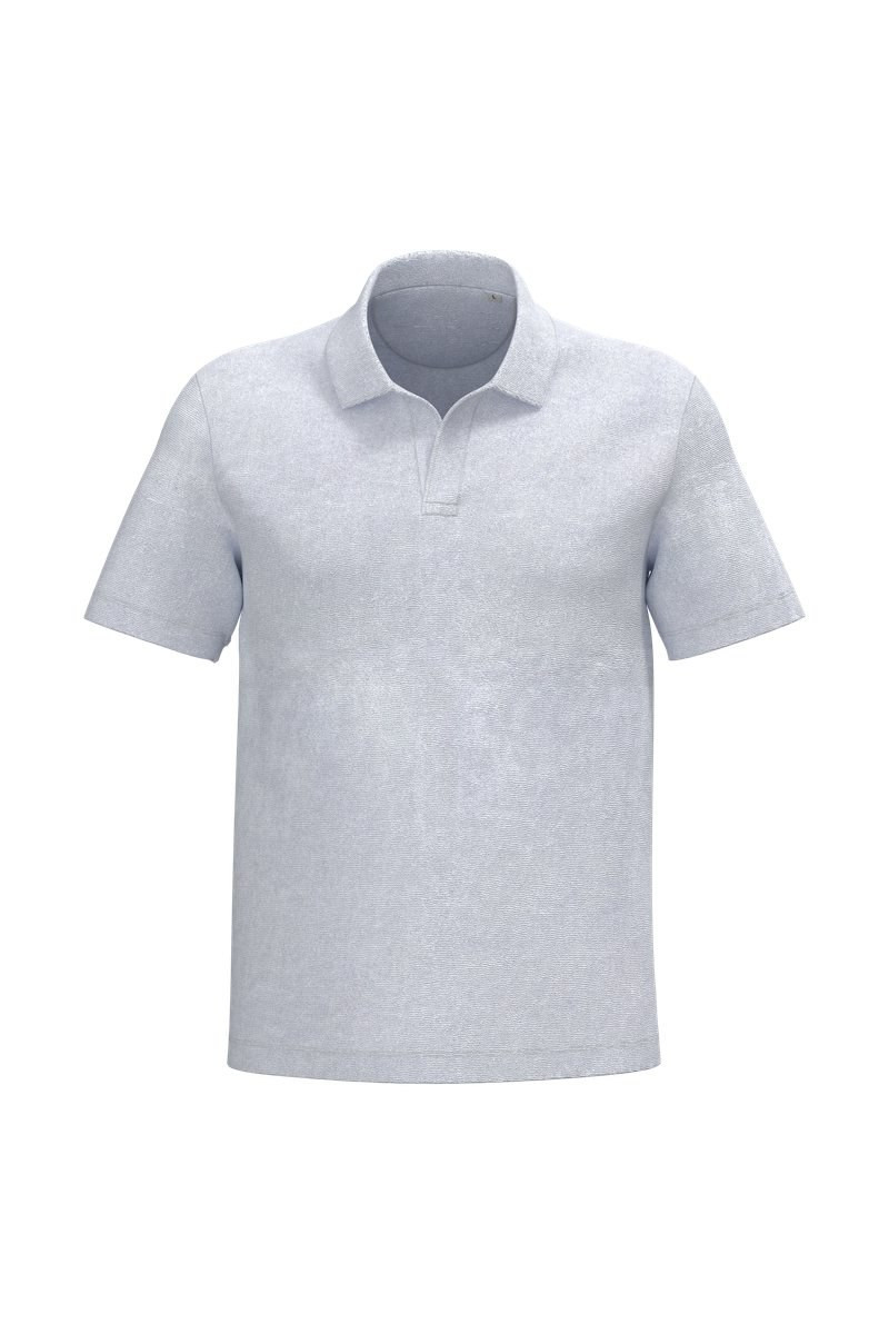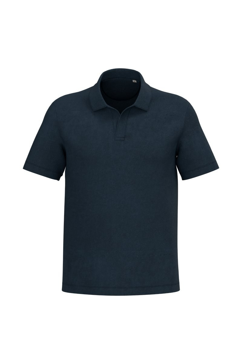 V-shaped buttonless polo shirt placket and collar in main material Reinforced shoulders.