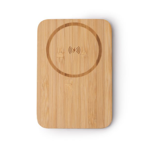 5000 mAh external battery with body made from bamboo.
