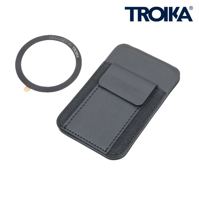 Card case MagSafe, stretch pocket for 2-5 cards, key compartment, compartment for 1 credit card inside, compartment for banknotes, magnetic attachment with N52 magnet on the smartphone, stand-up functions for horizontal and vertical positioning of the smartphone, additional metal ring with 3M adhesive strip for mounting to all common smartphones, notebooks, etc., 100% PU, metal, polyurethane, black