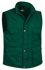 Multi-Pocket Work Vest: Our best-selling vest is a great value for money and comes in a wide range of colours and sizes. Made of a sturdy cotton twill fabric blended with polyester outer fabric for strength and durability, smooth inner lining and inner quilting for ensuring excellent thermal insulation. Stand-up collar with full-zip flap and snap button front closure, which provides warmth and comfort. Elasticated waistband and armholes for a secure and comfortable fit, adjustable waist with side snap button fastening for a better fit, a tailpiece that covers the lumbar zone for added comfort and also provides a large printing area.Two front gusseted pockets, two upper velcro flap pockets, two slanted pockets, two zippered pockets at intermediate height, a pen holder and an inner velcro pocket for a secure and convenient storage. Includes an inside back zip for easy marking with different methods: screen printing, embroidery, transfer printing, badges, shields, vinyl application. Ideal as workwear, uniforms and versatile use.