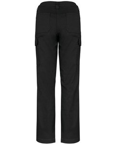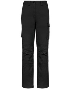 1 pocket with flaps and velcro fastening on the left when worn, 1 double open tool pocket on the right when worn, 2 back patch pockets, 2 knee pad pockets in matching colour with velcro and flap inside to support and adapt the knee pad.