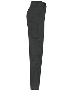 1 pocket with flaps and velcro fastening on the left when worn, 1 double open tool pocket on the right when worn, 2 back patch pockets, 2 knee pad pockets in matching colour with velcro and flap inside to support and adapt the knee pad.